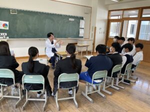 2025年10月30日(木)に新見南中学校(新見市ドクターネットワーク主催)で行われた「ふれあいミーティング」に、当院より村上医師が参加し、生徒の皆さんから「医師という職業」について多くの質問を受けました。